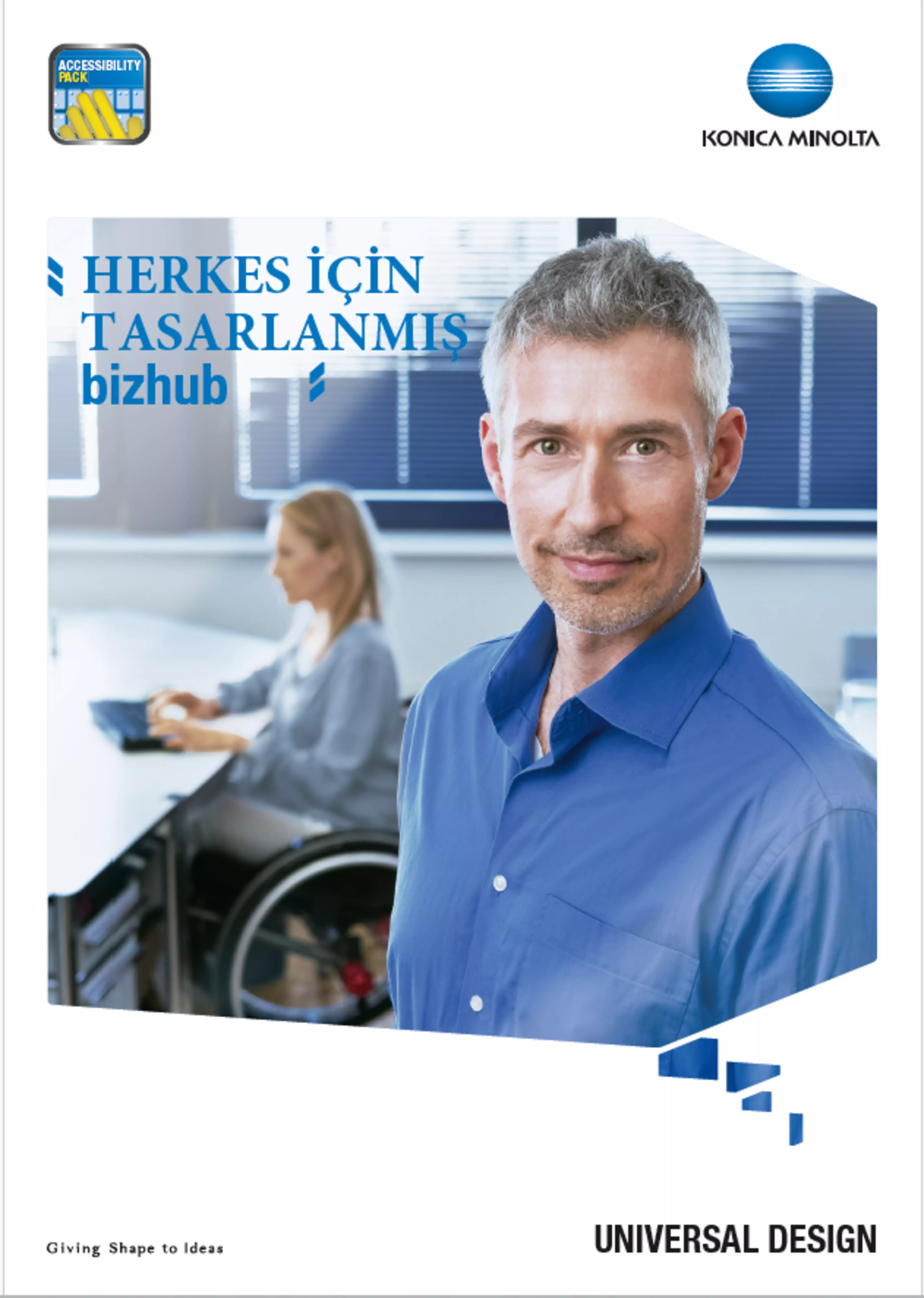Konica Minolta’da Evrensel Tasarım, net bir vizyonu takip eder: genç, yaşlı, eğitimli, geçici, deneyimli veya deneyimsiz fark etmeksizin herkesin kullanabileceği erişilebilir ürünler.