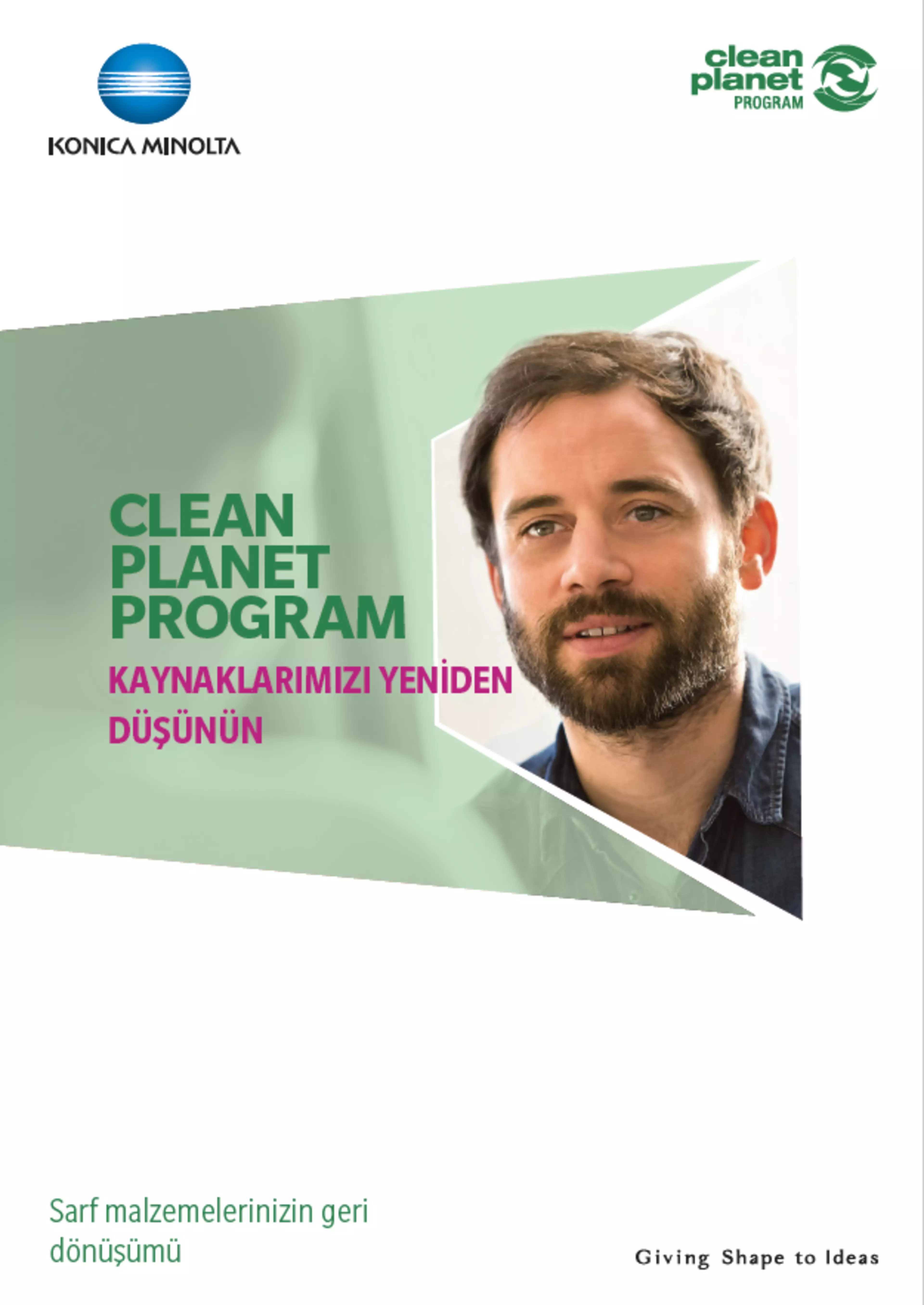 Konica Minolta’nın ulusal operasyon şirketleri, sarf malzemelerinin toplanması ve geri dönüştürülmesi için kendi çözümlerini uyarlamışlardır. Şirket şu anda bu bireysel çözümleri uyumlu hale getirmek için çalışmaktadır. Yeni hizmetimizin adı Clean Planet Programıdır – bu program, seçili ülkelerde bizhub, AccurioPrint ve AccurioPress serileri için kayıtlı müşterilere şimdiden sunulmaktadır.